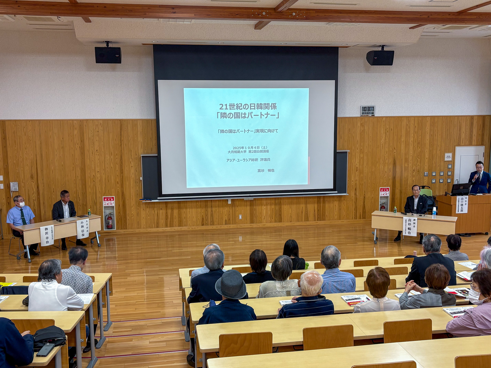 第2回公開講座は、元韓国富士ゼロックス会長の高杉暢也氏に講演をいただきました。内容はアジア通貨危機下での韓国における企業の経営再建の経験と、その後今日まで取り組まれてきた日韓の経済・文化交流についてでした。グローバル化が進み国際競争力がますます問われる時代にあたって、一層の日韓連携の重要さが深く印象に残りました。(文責:地域研究センター(山口))