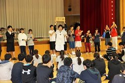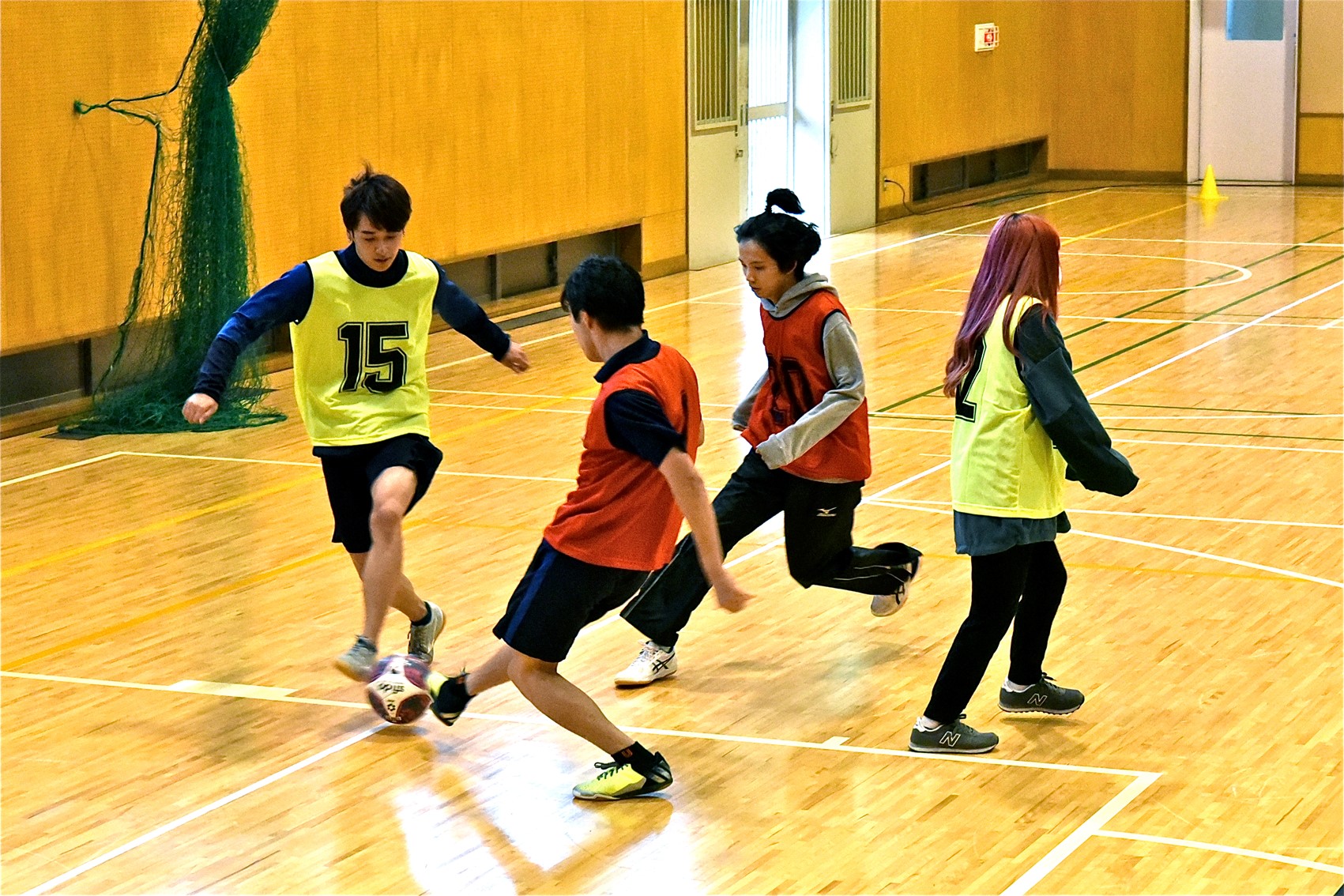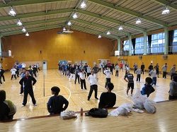 学生が男女に分かれ、その中でチームに分かれて対戦します。