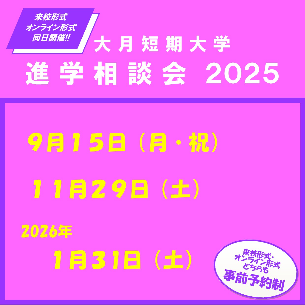 ※返信されたメールは、進学相談会当日まで保存しておいてください。当日、メール画面(またはプリントアウトした紙)をご提示いただきます。