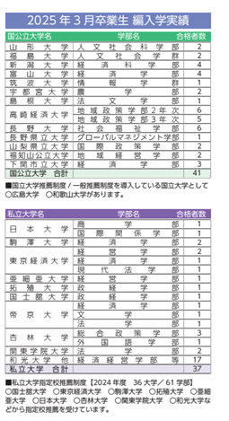 大学へのもう一つ入り口として、多くの大月短大生がチャレンジし、自分なりの新たな道を切り開いています。